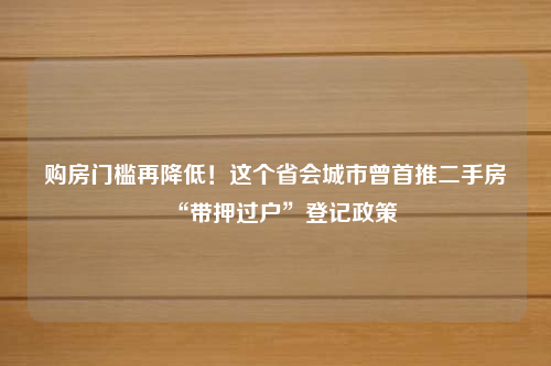 • 購房門檻再降低!這個省會城市曾首推二手房“帶押過戶”登記政策
