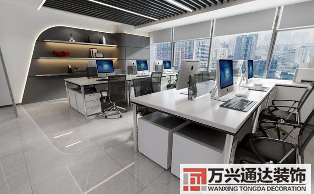 首先辦公室小那么采光就會稍微差,第一解決的就是采光問題,所以在設計的時候比如說隔墻盡量選擇玻璃高隔墻,利用玻璃的通透性和半鏡面反射效果,這樣不僅能緩解采光問題,而且還能在視覺上“擴大”辦公室空間,讓員工的心情更爽朗。