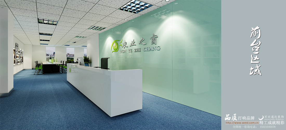 北京農業之窗以一種綠色設計,符合農業之窗的一個標準,綠色及公司的一個寬敞,藍色的地板都是自然地顏色。