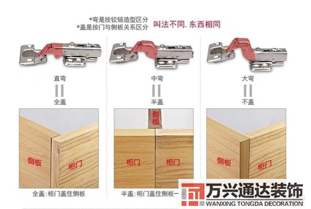 依照門板與柜體側板的安裝方式分:直彎全蓋、中彎半蓋、大彎不蓋(內嵌)